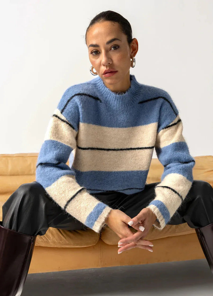 Fluffy Striped Knit - Blue
